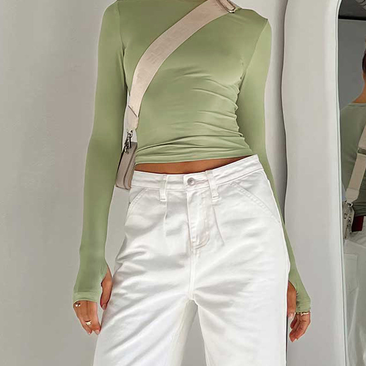 Long Sleeve Fitted Crop Top with Thumbhole Cuffs