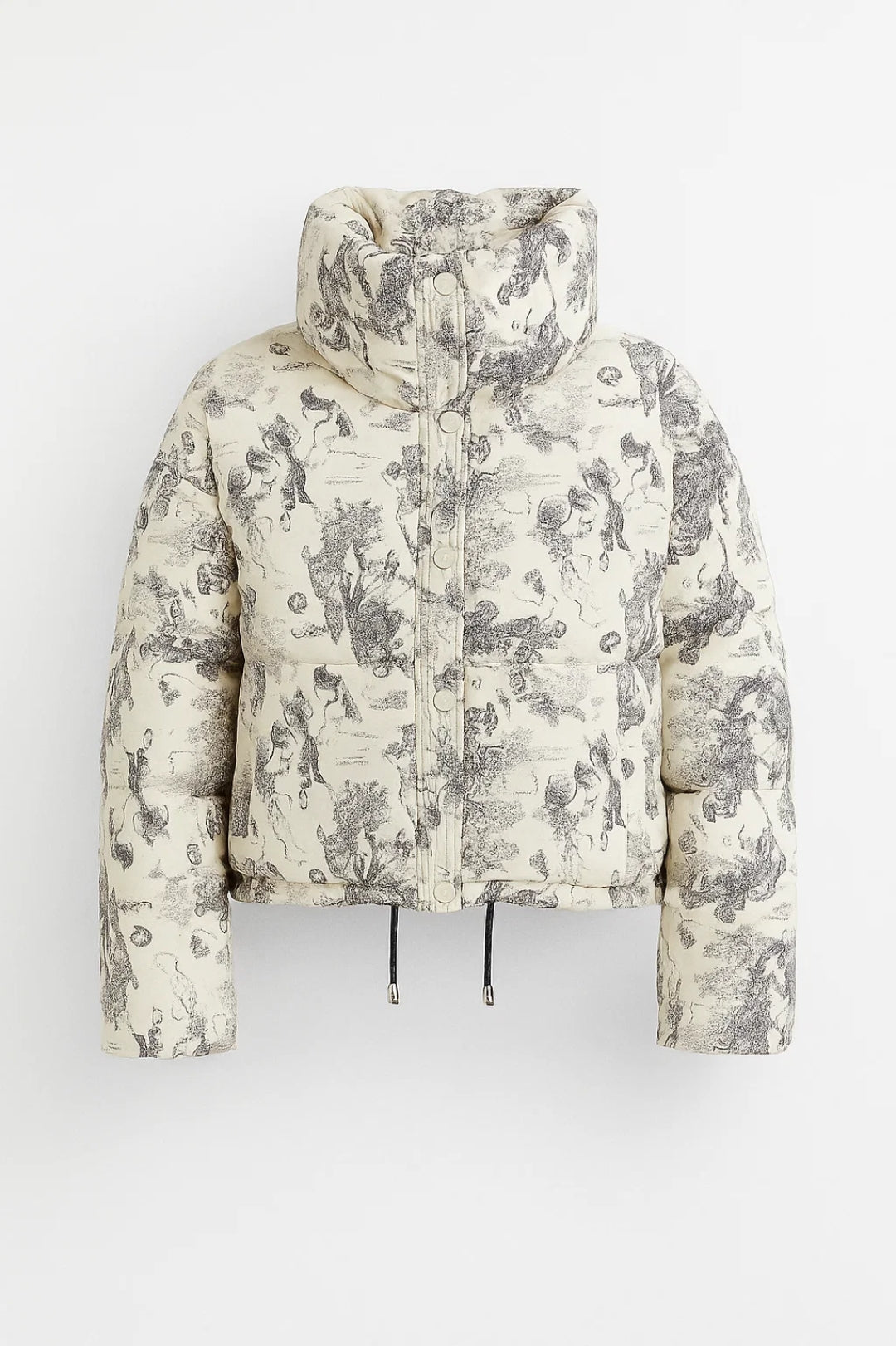 Printed Puffer Jacket with High Neck and Cropped Fit