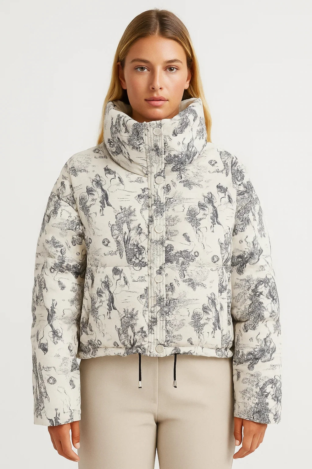 Designed for everyday use, travel, and casual outings, this puffer jacket blends functionality with elevated design. Its structured shape and unique print make it a standout outerwear piece that remains versatile enough for daily styling. Comfortable, practical, and stylish, this jacket is perfect for creating warm, modern looks with minimal effort.